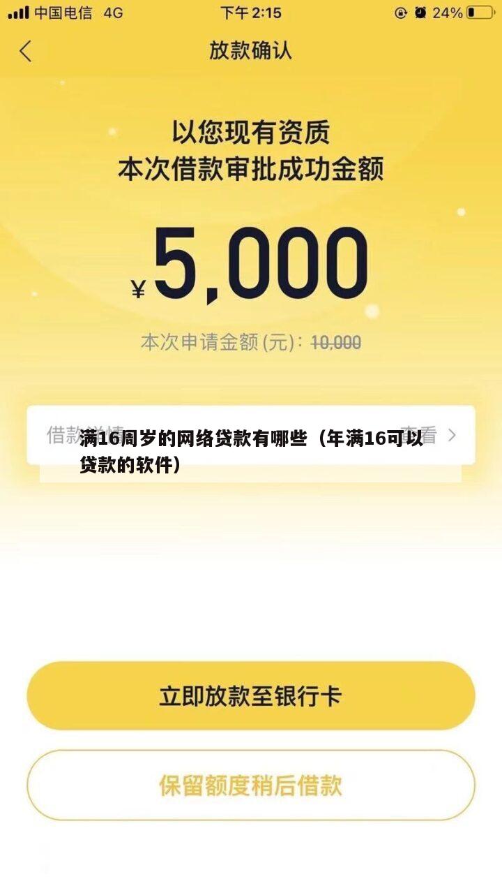 关于满16周岁的网络贷款有哪些和年满16可以贷款的软件的介绍到此就结束了,不知道你从中找到你需要的信息了吗 ?如果你还想了解更多这方面的信息,记得收藏关注本站。